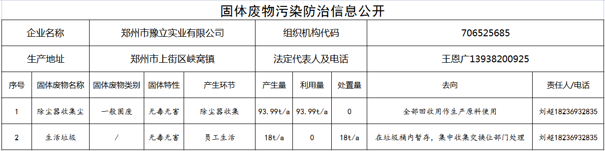 鄭州市豫立實(shí)業(yè)有限公司固體廢物污染防治信息公開(kāi)...